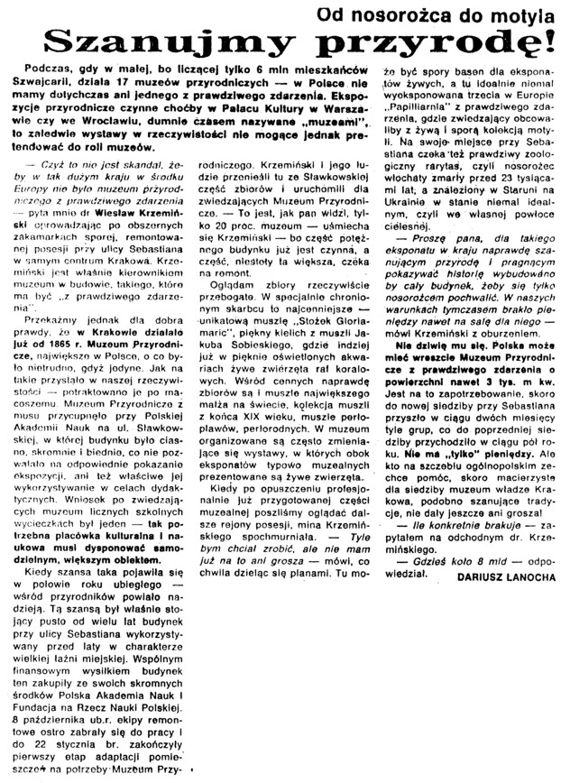 Z takim budżetem, jaki ma dyrektor Muzeum Przyrodniczego prof. Wiesław Krzemiński, w Ameryce nikt nie zabiera się do pokazania publicznie kota domowego.