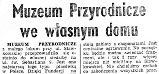 Muzeum Przyrodnicze z małego lokum przy ul. Sławkowskiej przeprowadziło się ostatnio do własnej siedziby na ul. Sebastiana 9.