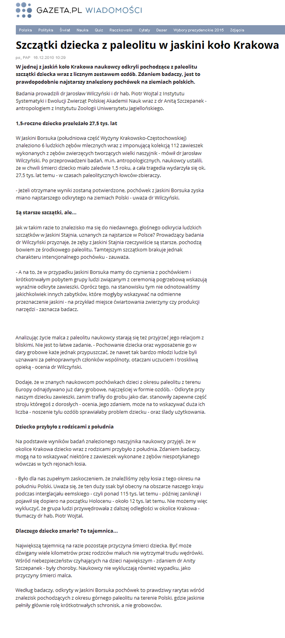 PAP: Odkryto najstarsze szczątki człowieka w Polsce; mają ponad 100 tys. lat