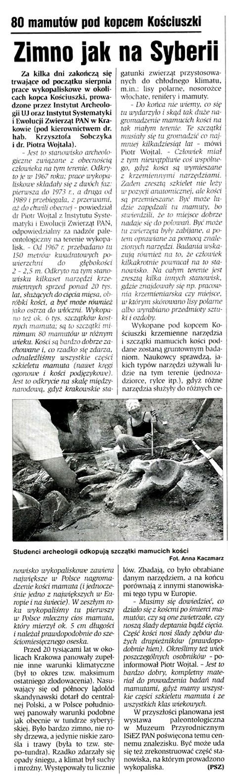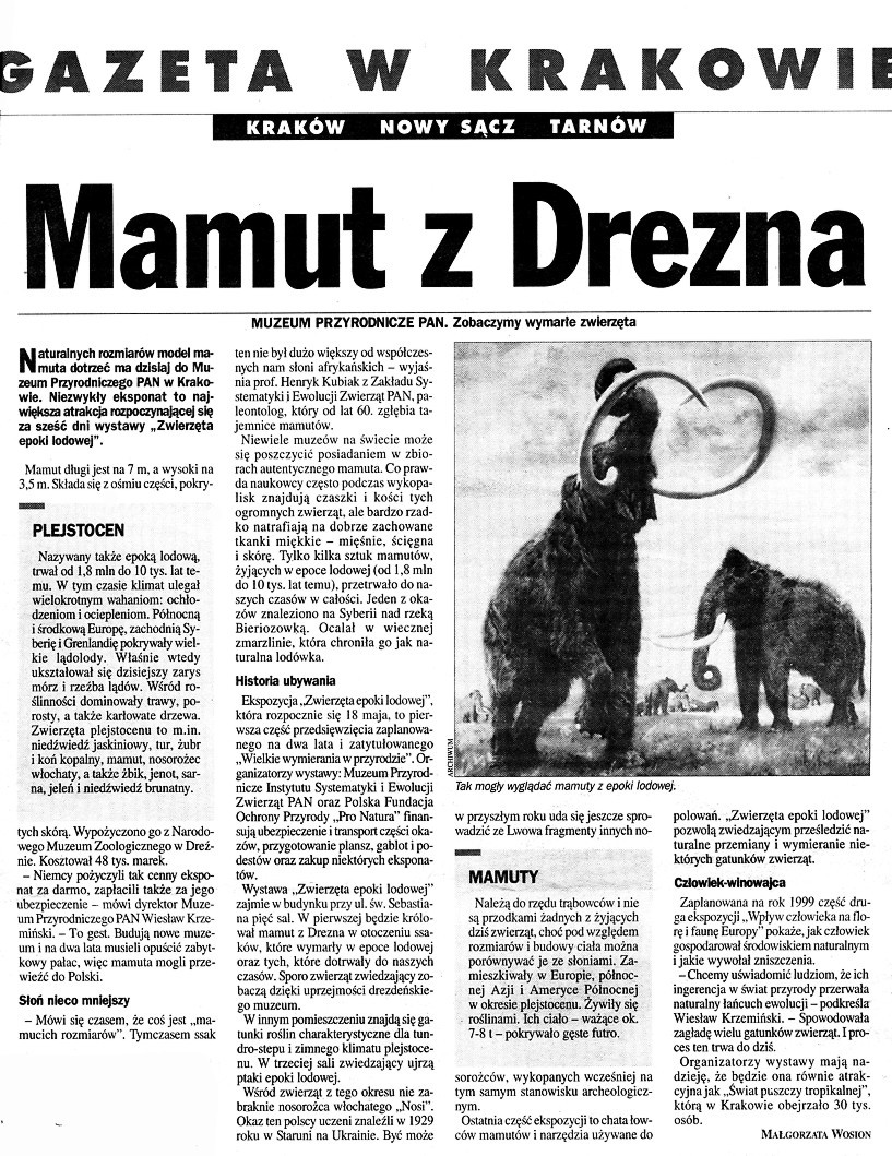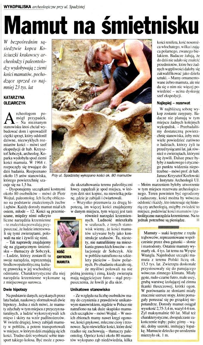 Dziennik Polski: To tu łowcy rozprawiali się z mamutami na terenie dzisiejszego Krakowa.