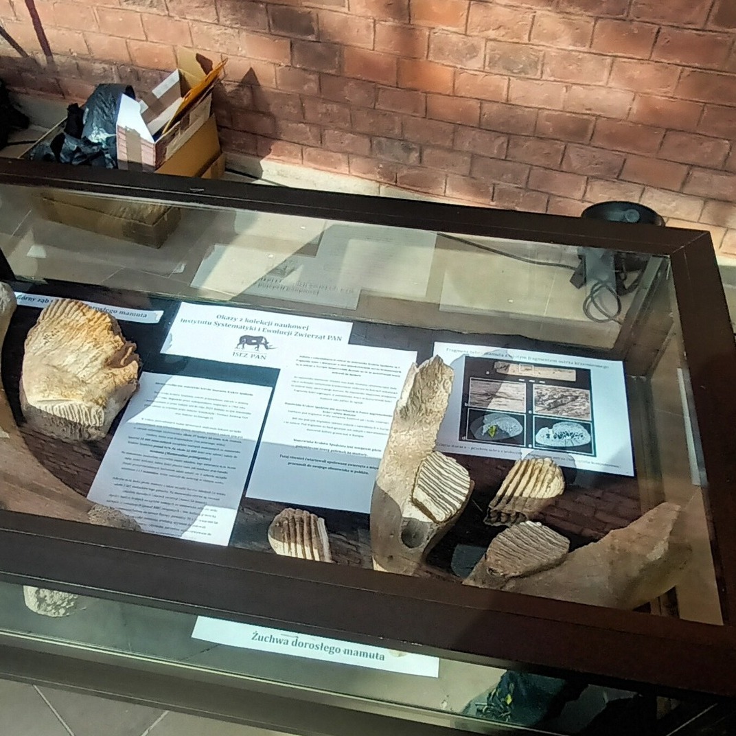 Na wystawie prezentowane jest również żebro mamuta z tkwiącym w nim fragmentem krzemiennego ostrza. Znalezisko to jest jedyne w Europie i jedno z kilku na świecie. Jest bezpośrednim dowodem na to, że paleolityczni łowcy polowali na te zwierzęta.