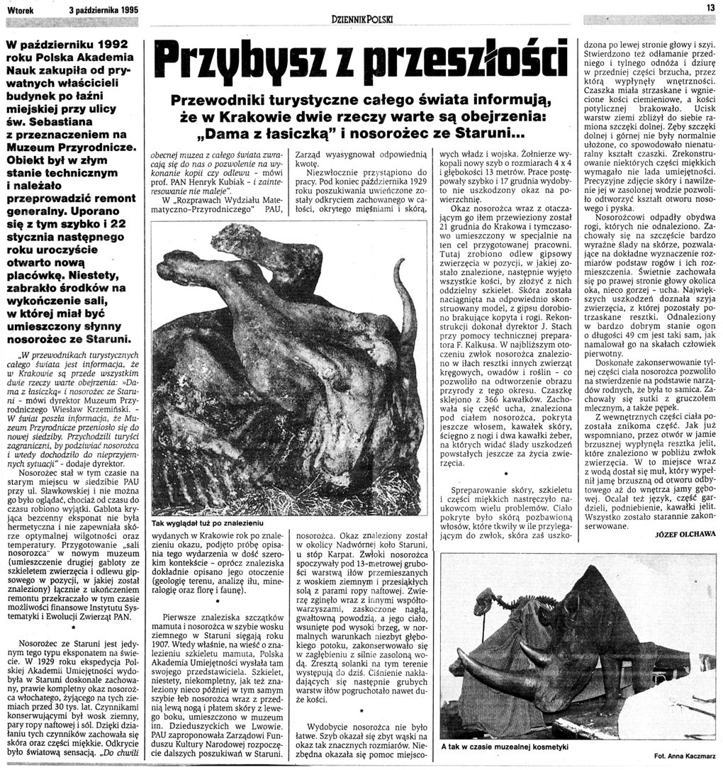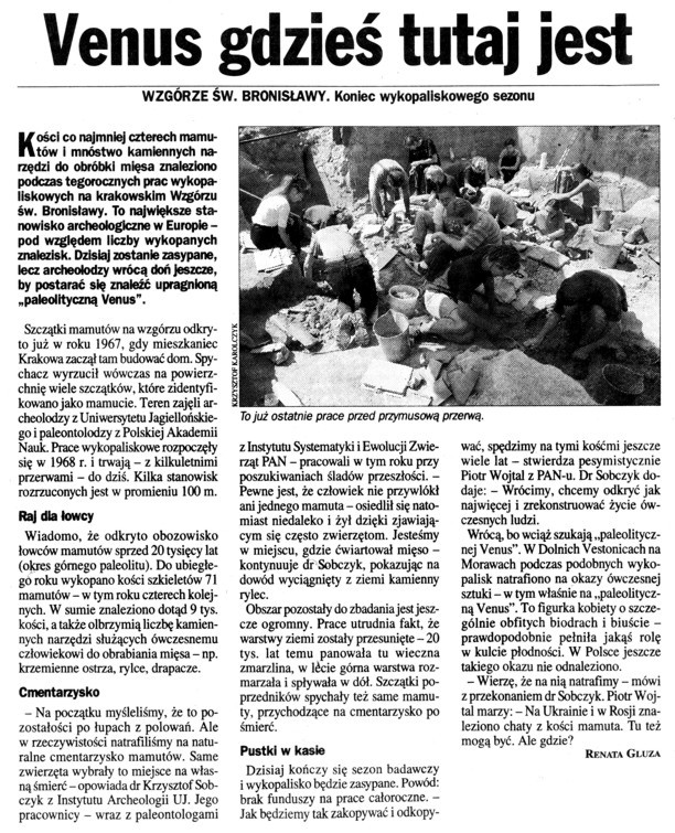 Dziennik Polski: To tu łowcy rozprawiali się z mamutami na terenie dzisiejszego Krakowa.