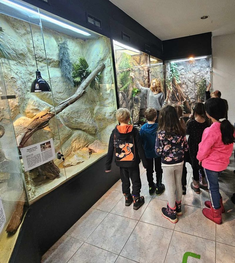 „Świat gadów” to wystawa łącząca żyjące współcześnie zwierzęta z kopalnymi. Tą interesującą gromadę zwierząt zaprezentowano w kilku modułach wystawowych, w podziale na obszary występowania, w scenerii znakomicie oddającej ich środowisko naturalne. Zobaczyć można gadzich rekordzistów - anakondę zieloną (Eunectes murinus) (dermoplast), uznaną za najgrubszego węża świata oraz pytona siatkowego (Python reticulatus) (dermoplast) - najdłuższego węża na świecie. Wśród gadów kopalnych na szczególną uwagę zasługuje niezwykle cenny okaz 1,5 metrowej czaszki krokodyla kredowego z rodzaju Steneosaurus. Dopełnieniem wystawy jest część edukacyjna, gdzie można dowiedzieć się jak zbudowana jest skóra gadów, jak wygląda wylinka węża, skorupa żółwia lamparciego czy jajko żółwia.